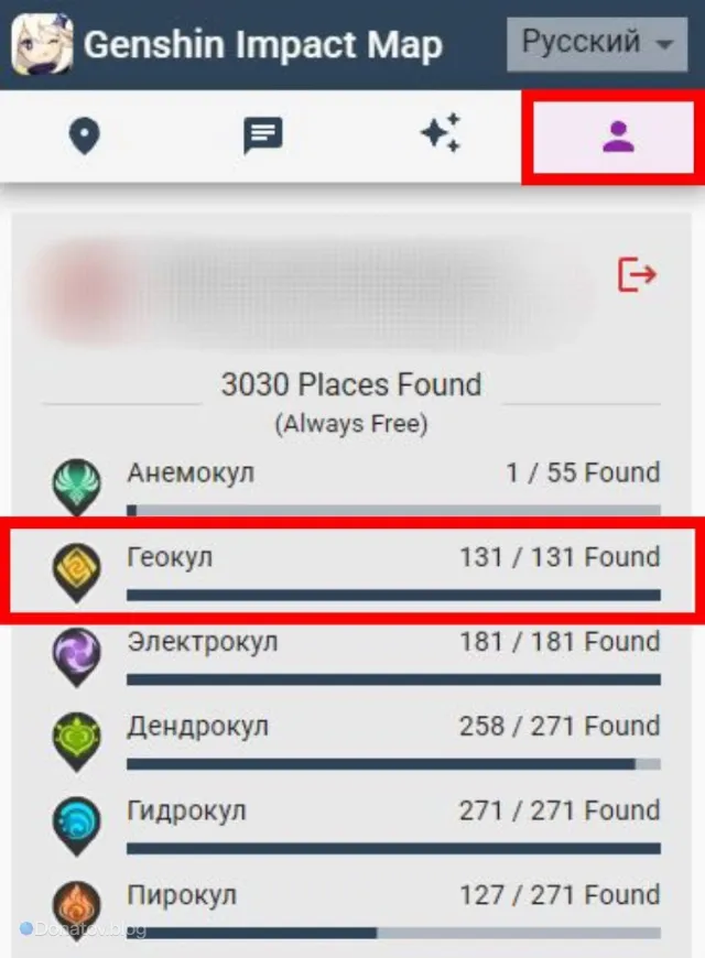 To start your hunt, navigate to the "Valuable Items" section and select the Geoculus filter. Clicking on an icon will reveal the exact location of the item in the game world.